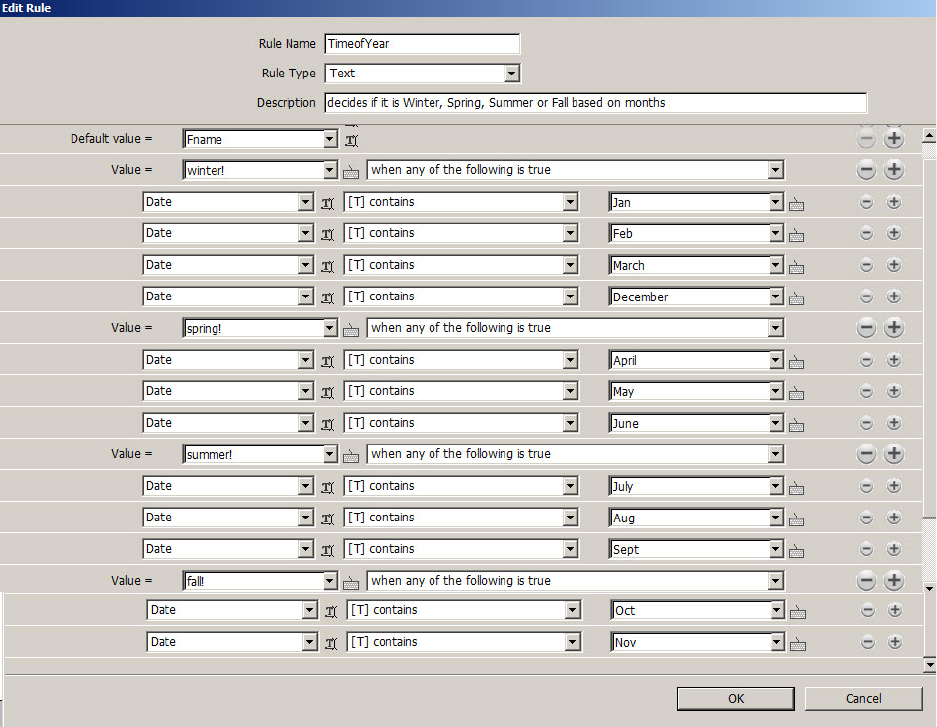 The next rule will work out if it is Spring, Summer, Fall, or Winter based on the Date field. This is an example of a