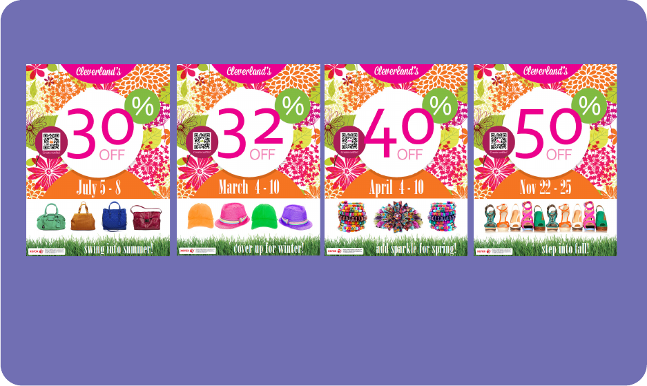 same dates, sales percentages, messaging, imagery, or QR codes.