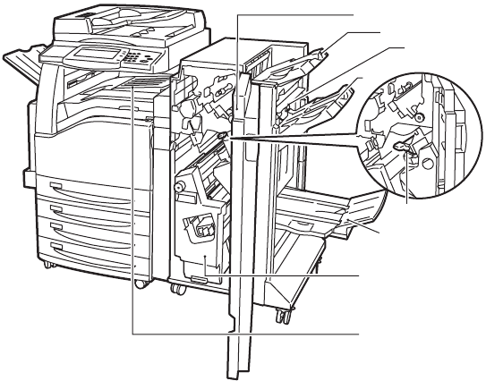 - Élimination des bourrages papier dans le module de finition intégré