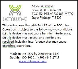Note: Whenever any Xetawave LLC module is placed inside an enclosure, a label must be placed on the