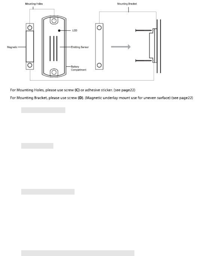 Mount the magnet or smaller piece onto the door in a position of about 5~6ft above the ground to prevent any
