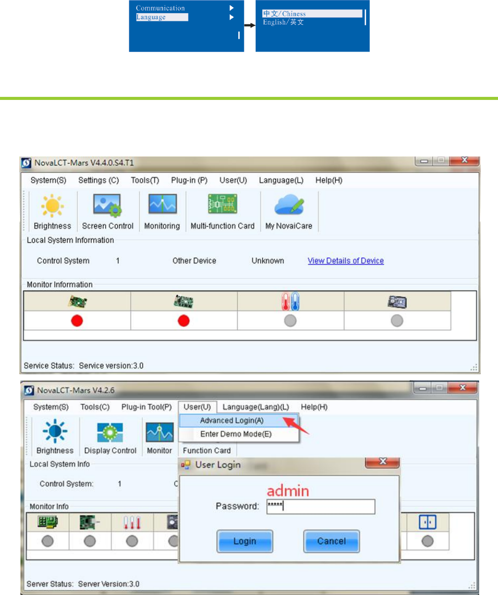 3D HD connect to a computer , and run NovaLCT-Mars on this computer, Login as an advanced user , the