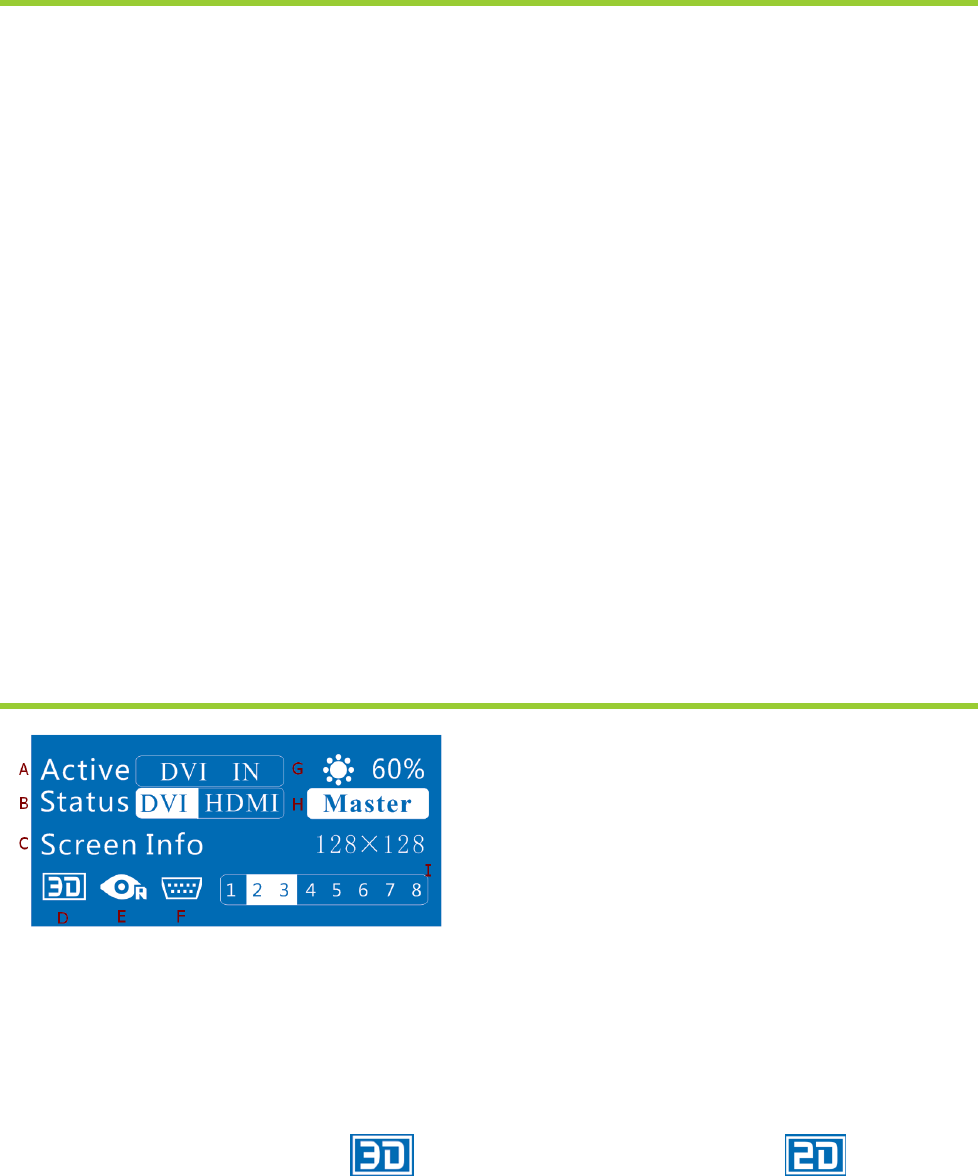 switched to 2D video source. The setting status will be displayed in the home screen of LCD.