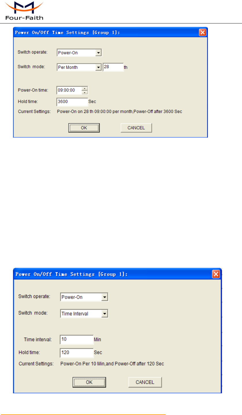 IP Modem power on interval every 10 minutes, and power off 120 seconds later.