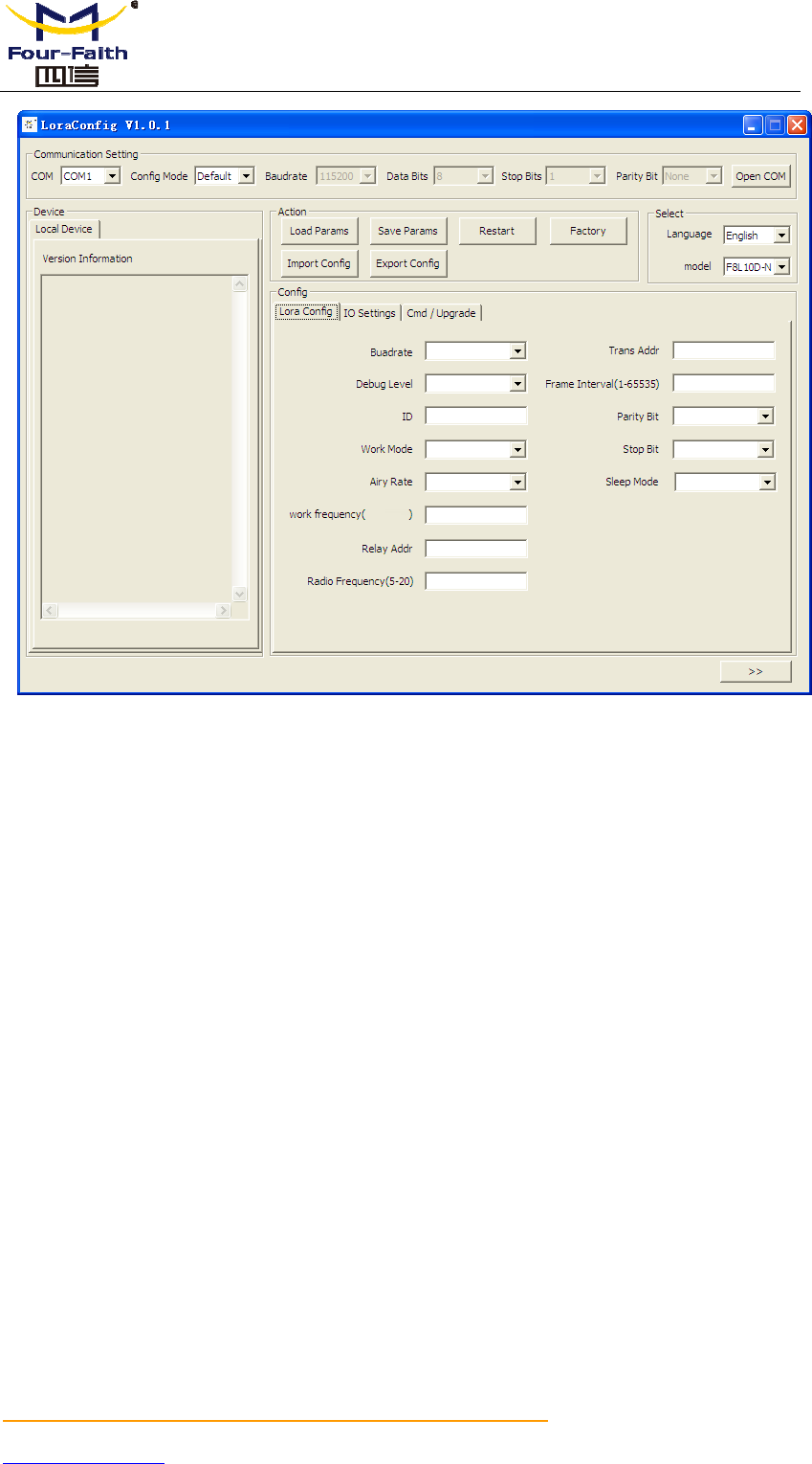 Through the Four-Faith configuration software LoRaConfig: all configuration is