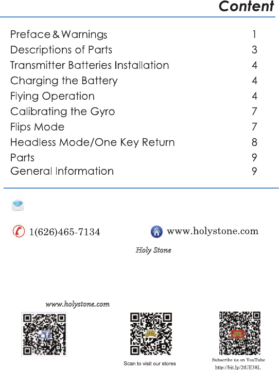 (URL: facebook.com/HolyStoneToy), and you will be able to:
