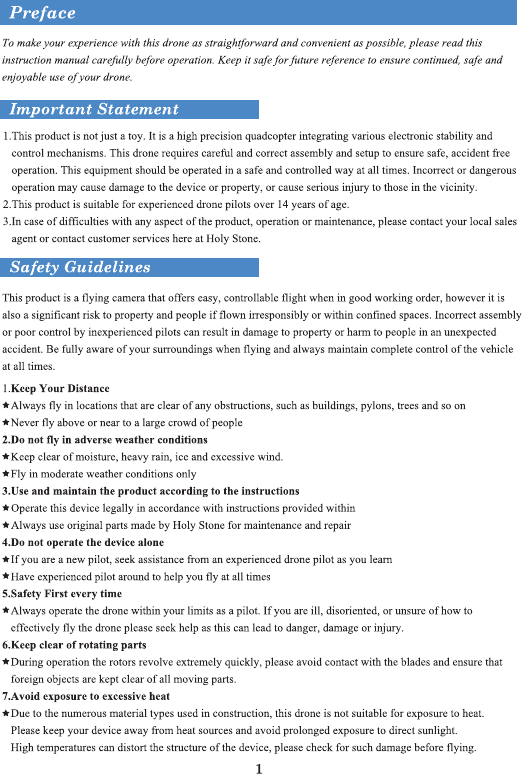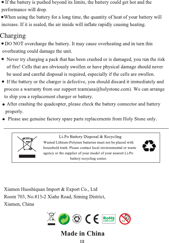 Xiamen Huoshiquan Import and Export HOLYSTONEAD RC quadcopter User Manual