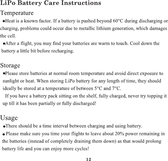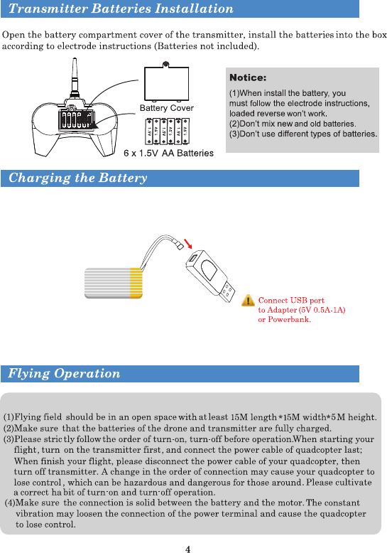 Warning: Please use only the supplied USB charger connector to charge the Lipo battery.