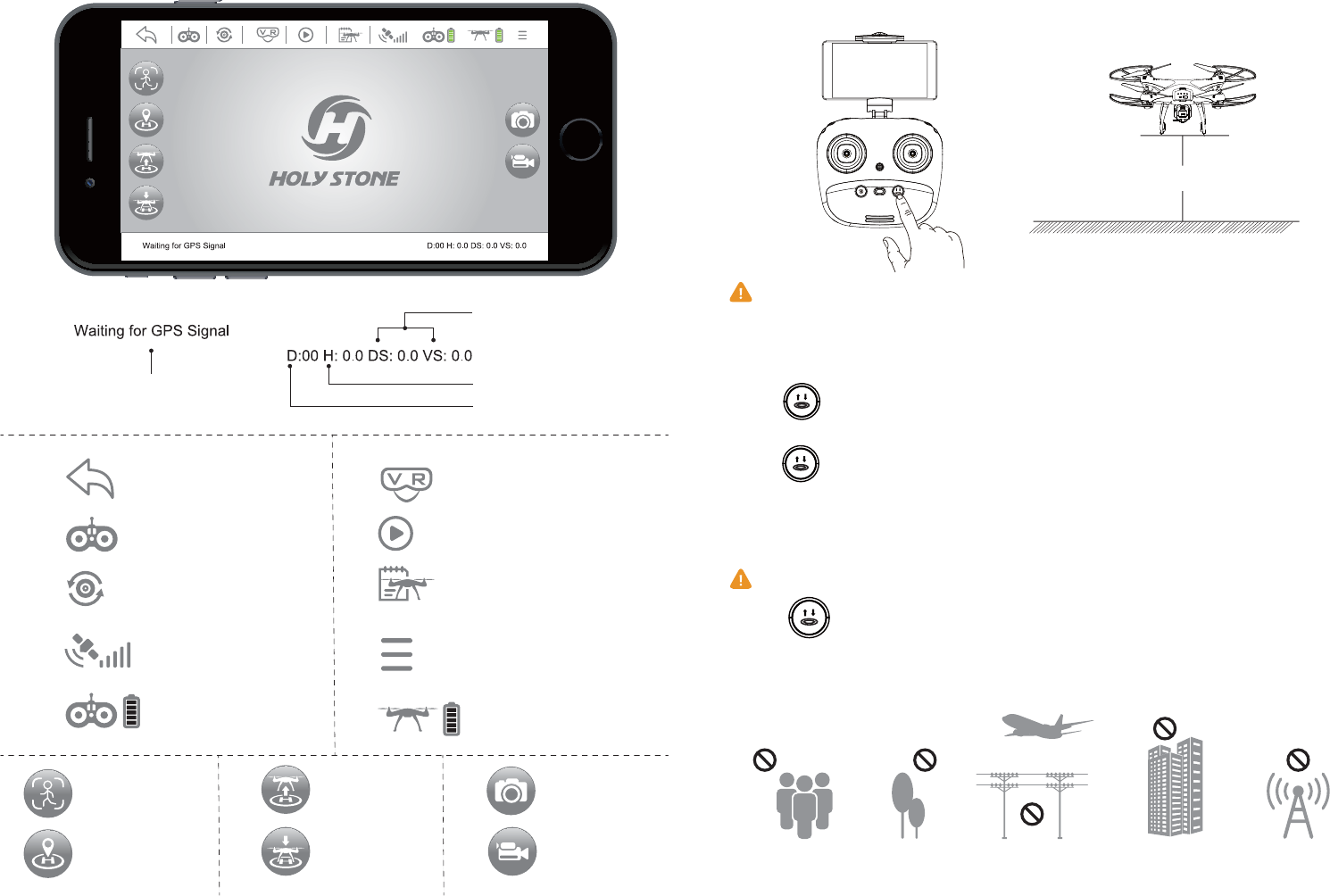 ③ If you fly indoors, please hold button for 3 second to exit GPS Mode, and the