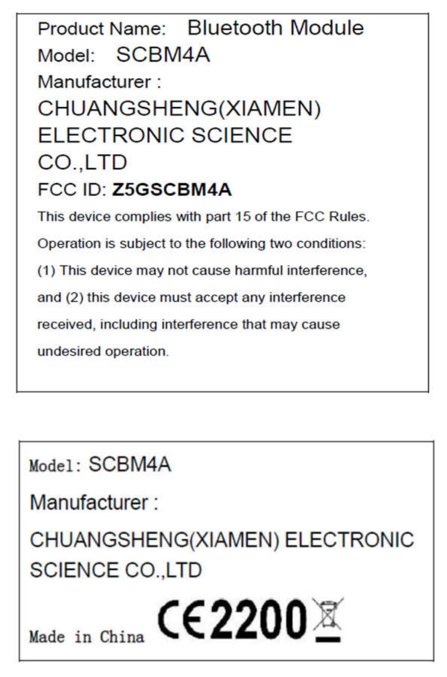 following text: "Contains FCC ID: Z5GSCBM4A”