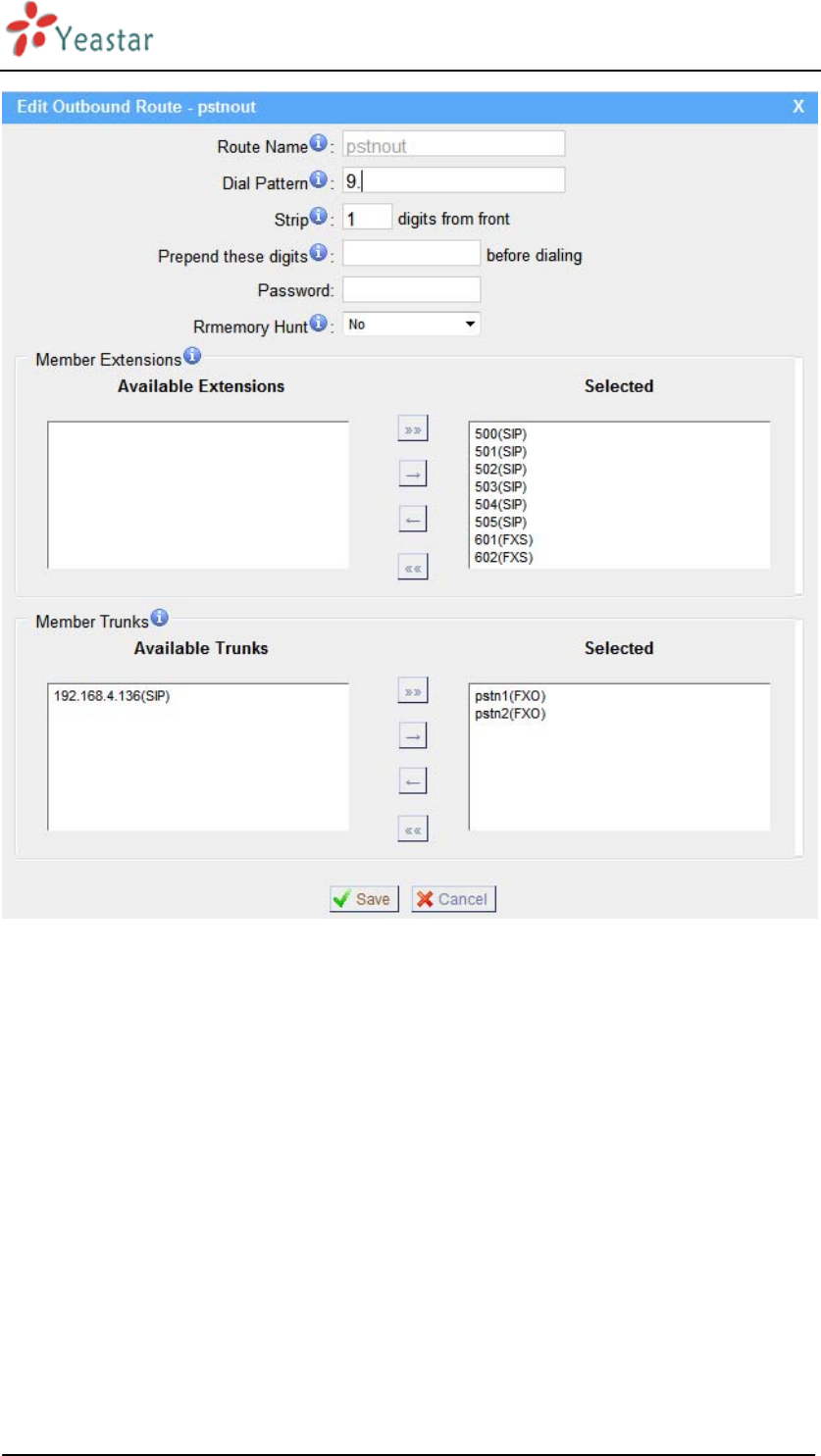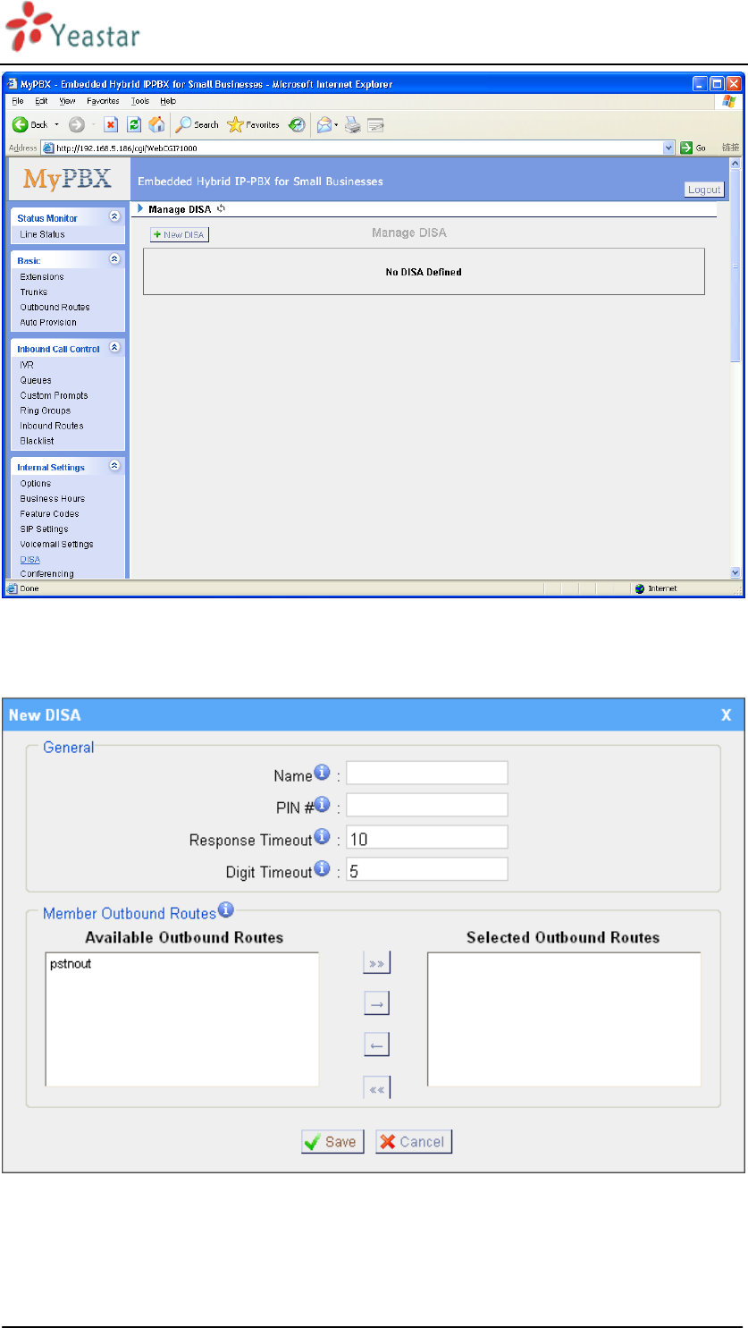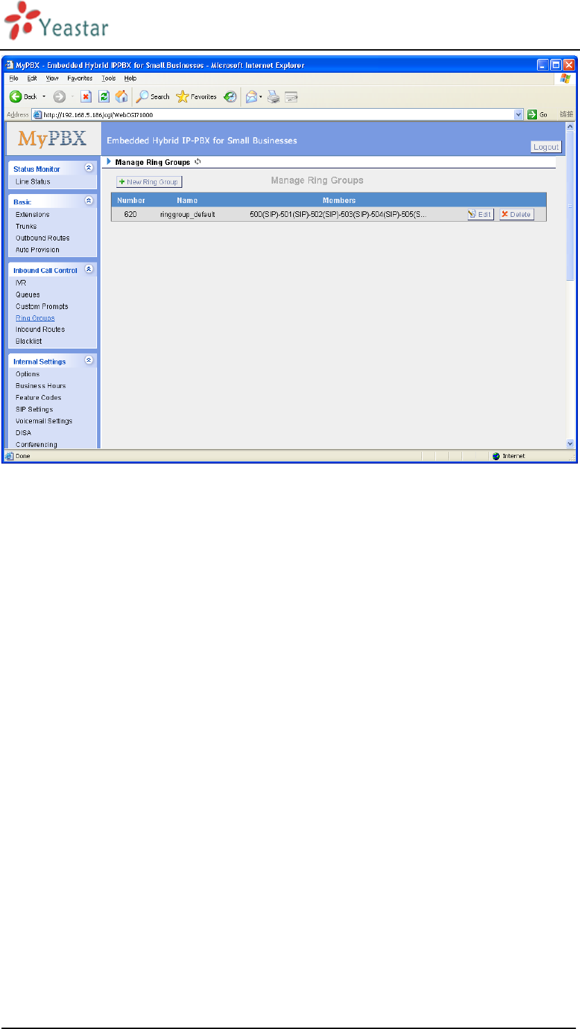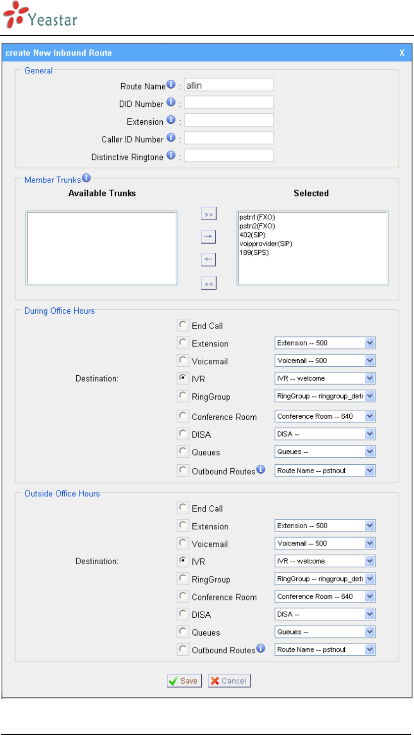 MyPBX web interface, Inbound Routes Æ Edit Inbound Route, fill in the Internal