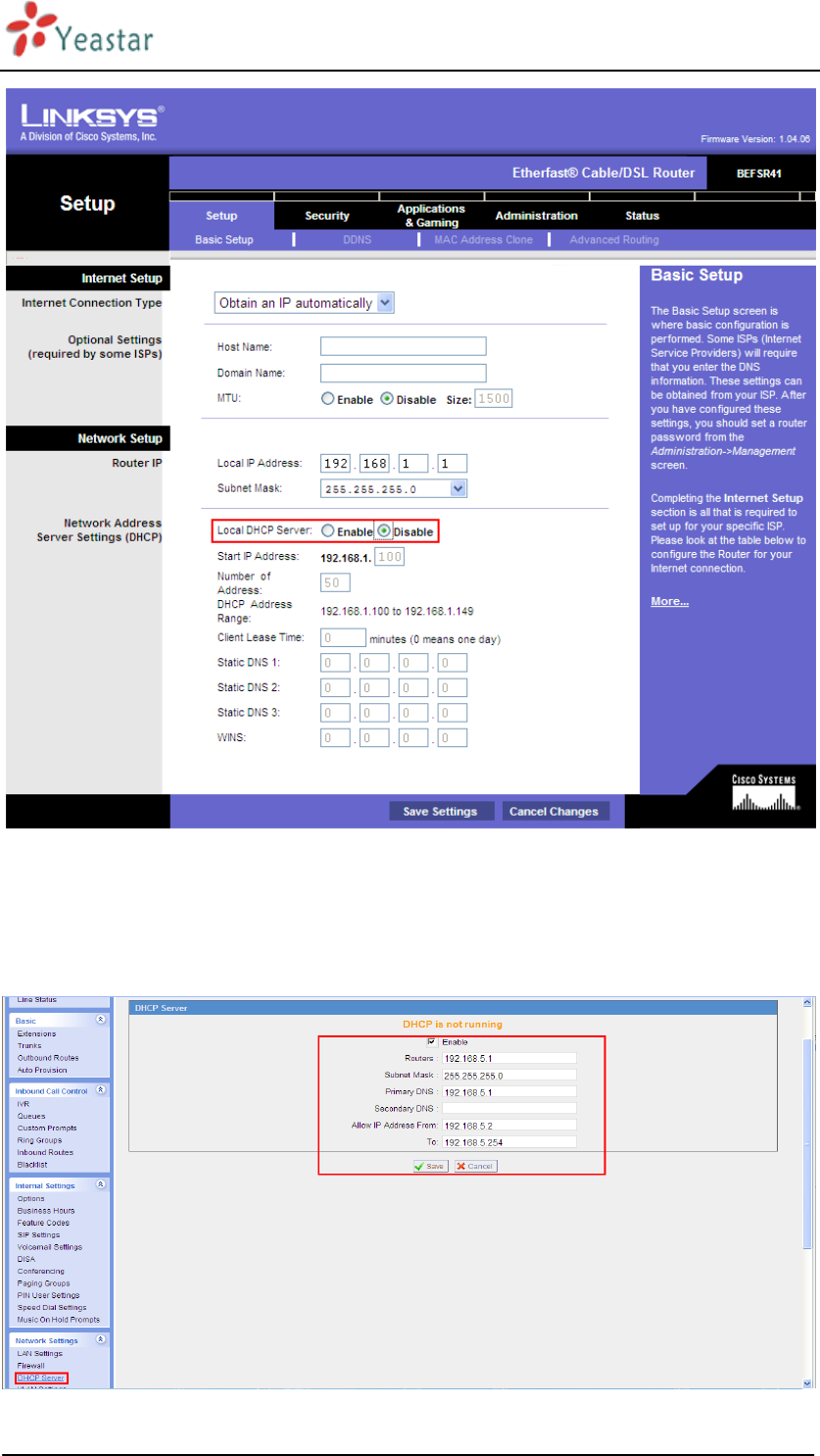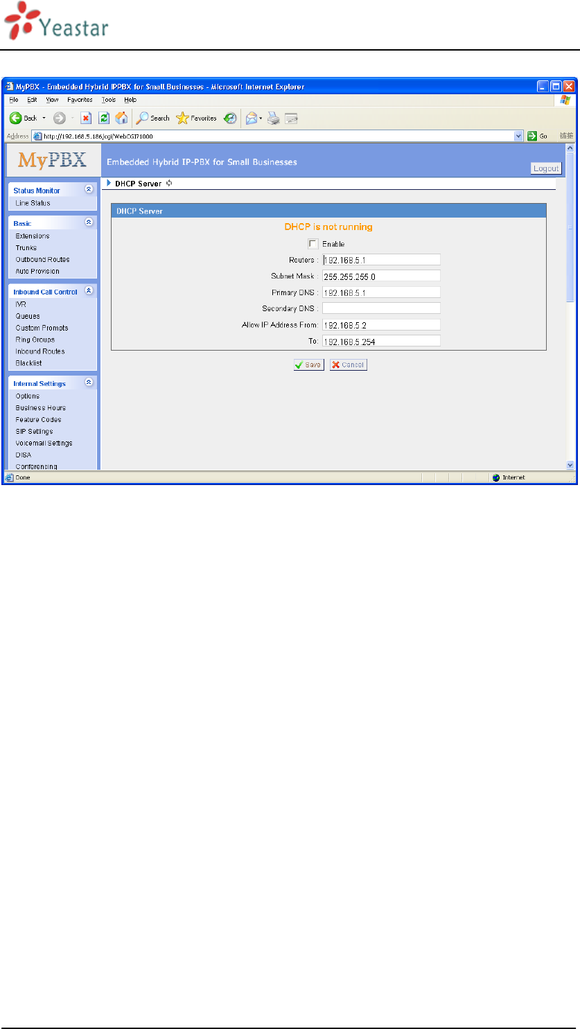 Login MyPBX web interface, System Settings Æ DHCP Server Æ Enable DHCP