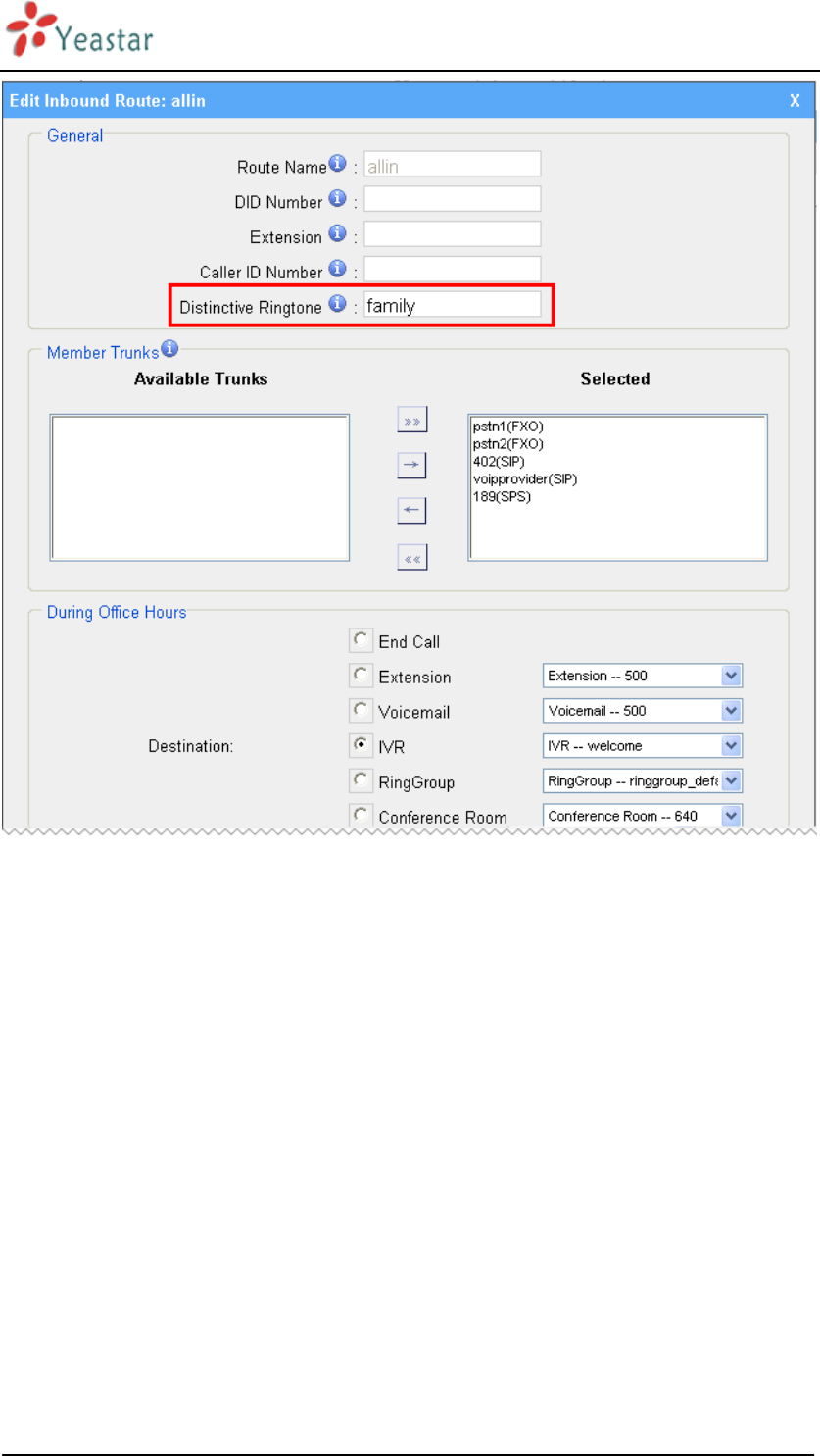 Step2. Configure the ‘Distinctive Ringtone’ on MyPBX.