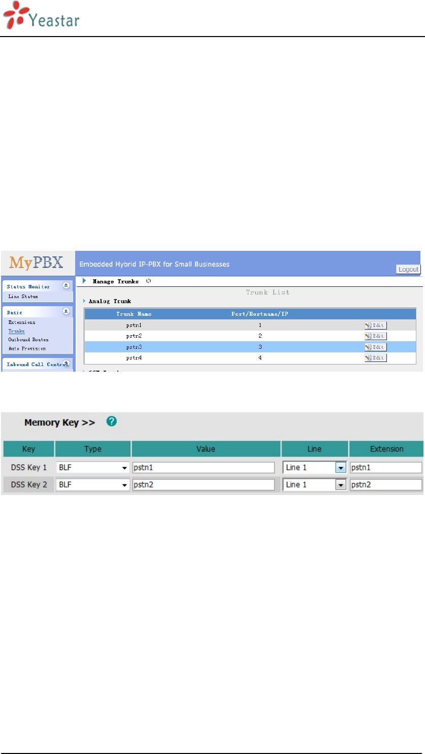 When you press DSS Key 1/2, the phone will connect to pstn1/pstn2 line. If