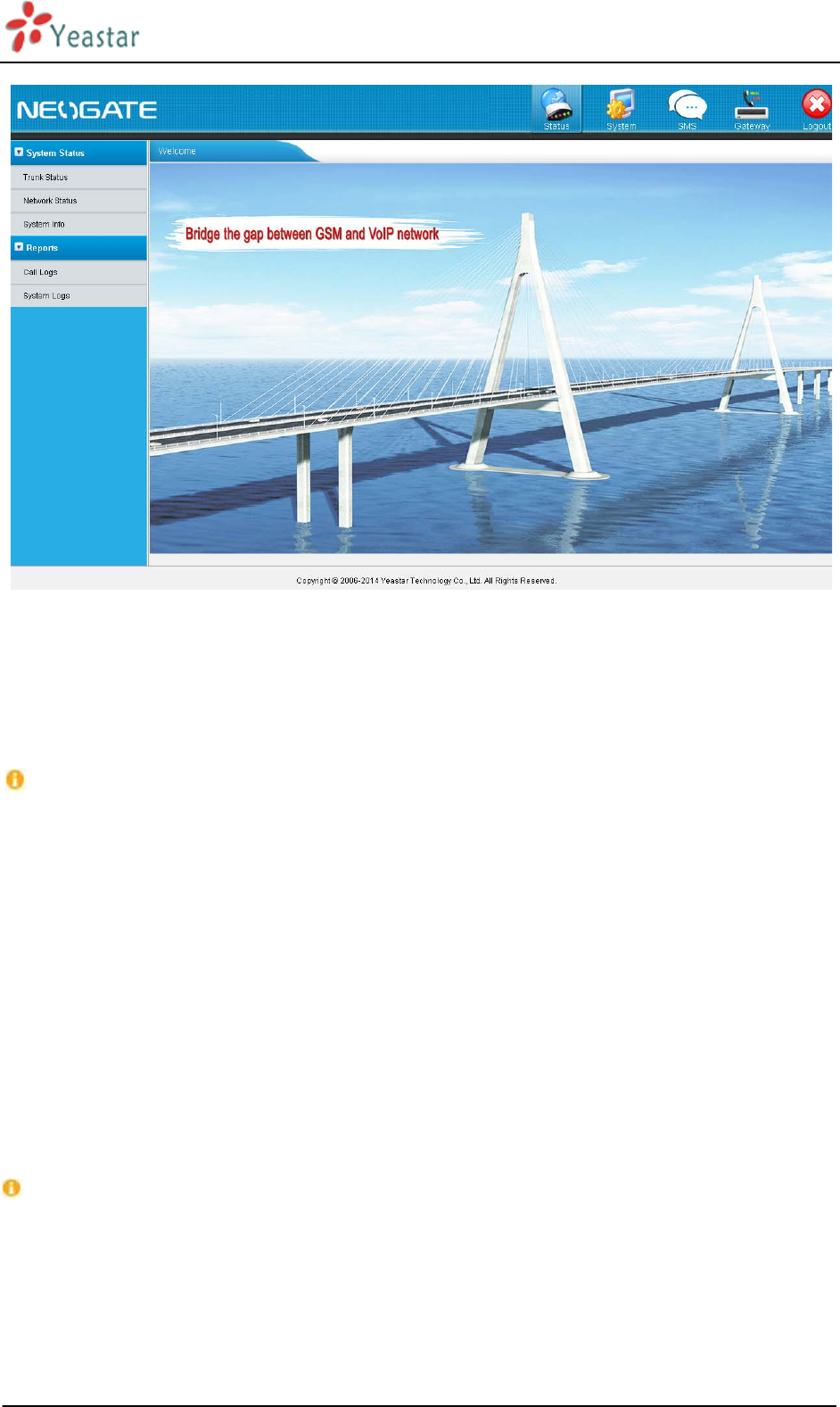 This Installation Guide only explains the installation and basic settings of NeoGate TG Series. For more