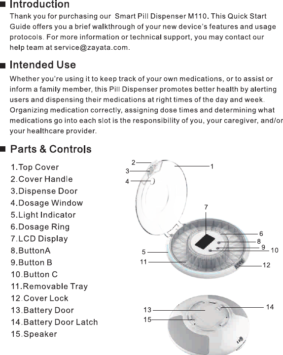 Xiamen zayata technology M110 PIll Reminder User Manual M110