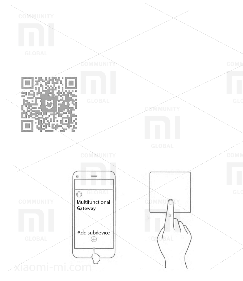QR code to download the Mi Home mobile application, connect the Xiaomi