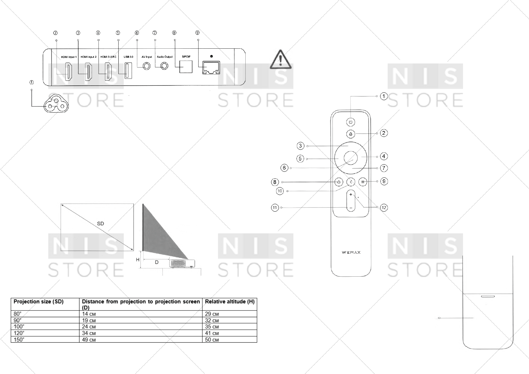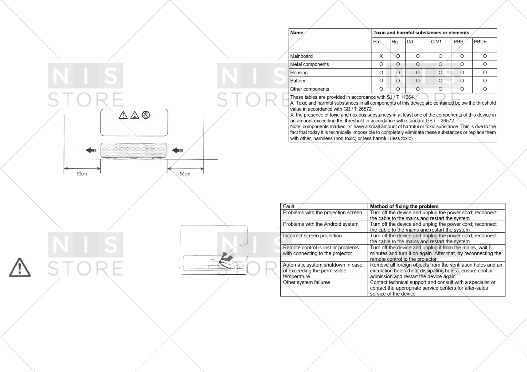 place foreign objects on the projector at a distance of 50 mm so as not to interfere with