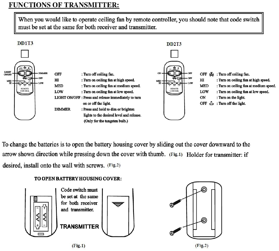 XIN HUI A.A. ELECTRONICS & TOYS LTD DD1T3 and DD2T3 is a 315MHz Lower Power SRD. Users Manual