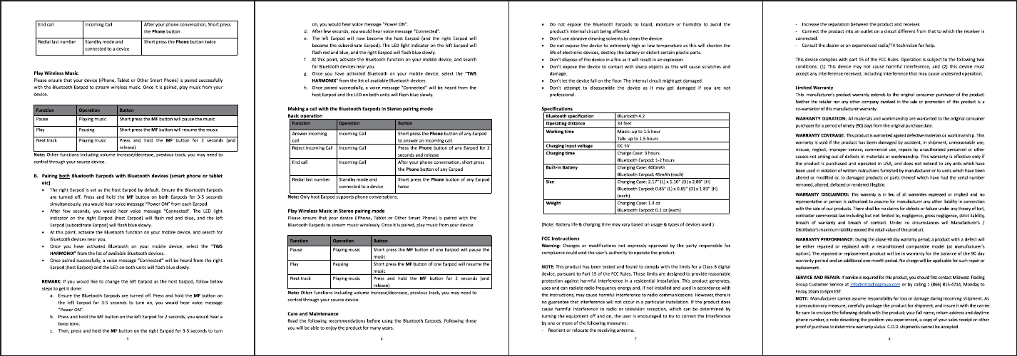 XinHuaMei Electronics BTH169 Bluetooth Earbud User Manual BTH 169