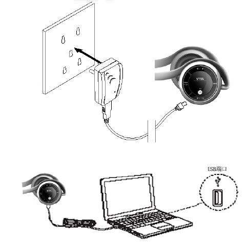 charge jack on the headset. When charging, the red light of the headset
