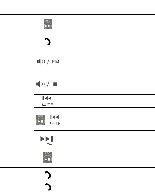 Volume “-”/Recorder play Answer the call/Bluetooth ON/OFF