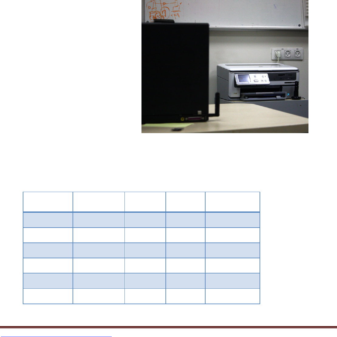 laptop and PC adapter were placed in one side of the room, and each time a different device was placed in the