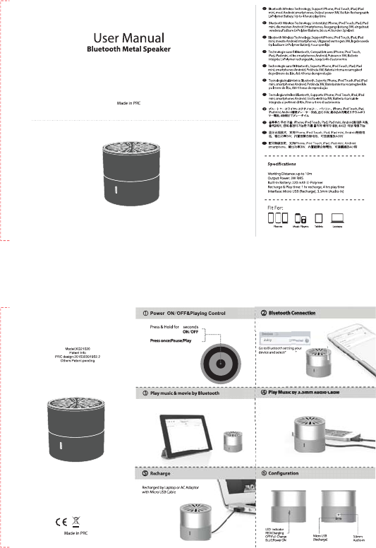 Xoopar XG21019-20 Bluetooth Speaker User Manual UserMan