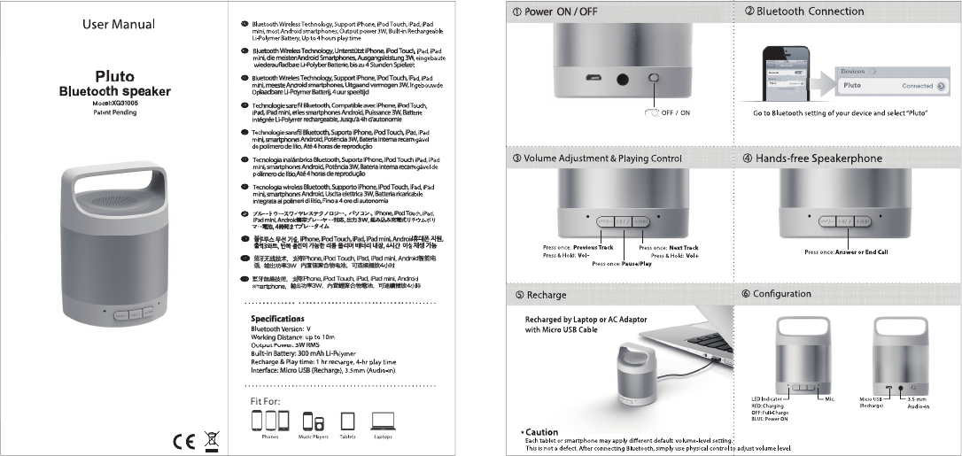 Xoopar XG31005 Bluetooth Speaker User Manual Pluto speak