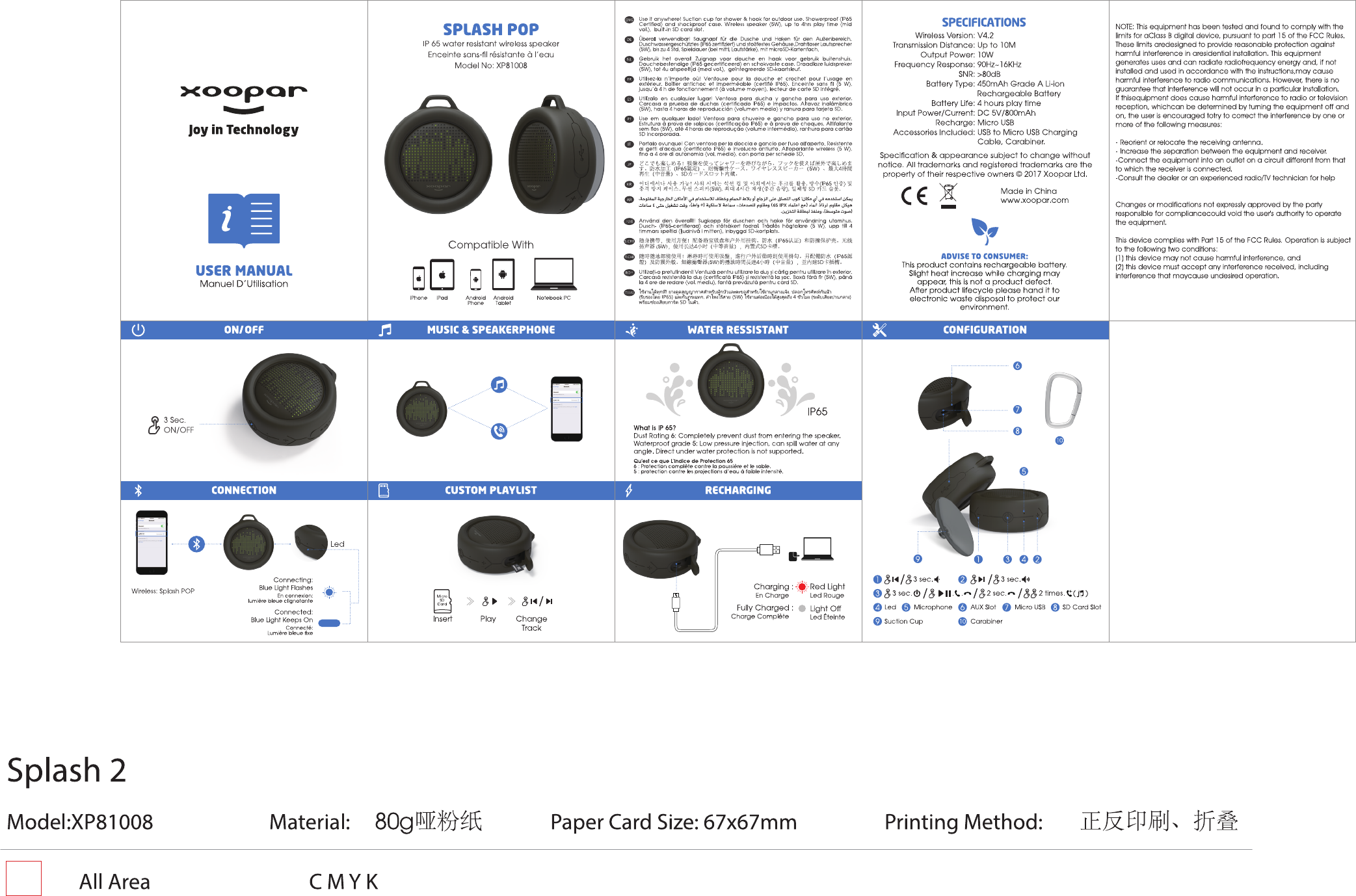Xoopar XP81008 SPLASH POP Waterproof Wireless Speaker User Manual Splash 2 IM 20180329 01