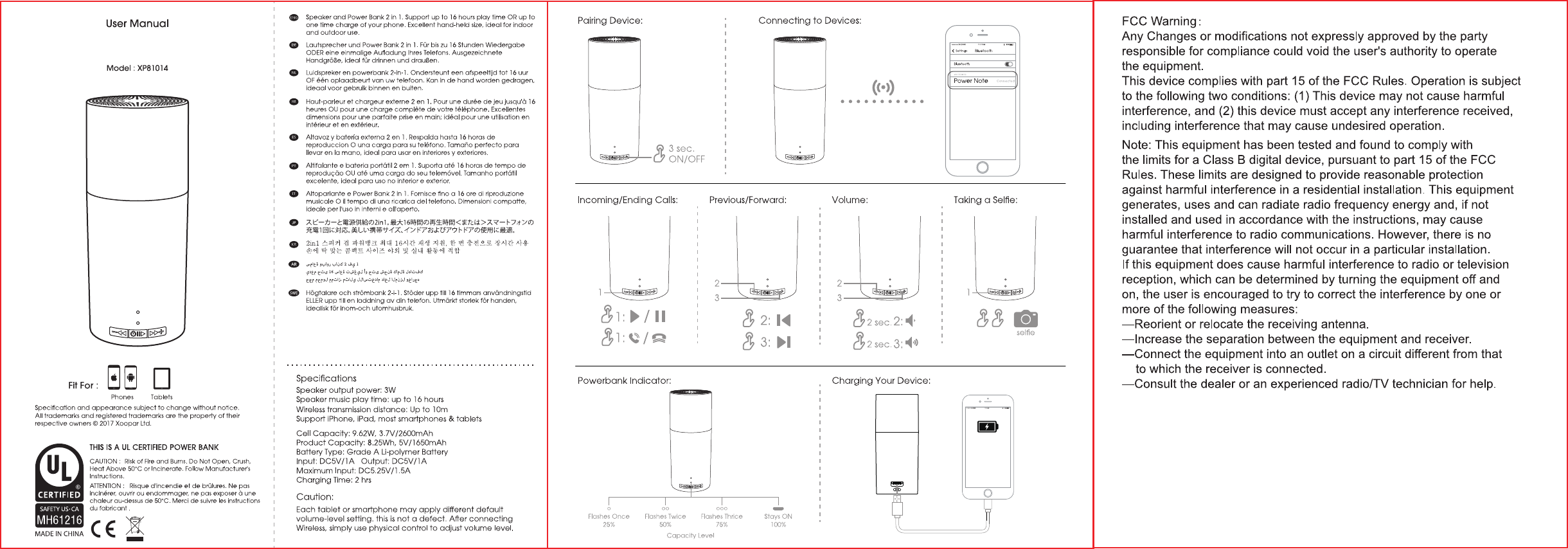 Xoopar XP81014 Power Note Speaker & Power Bank User Manual Power note IM 20170705