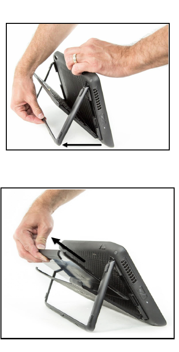 1. Hold the Tablet PC upright and pull the kickstand out from the bottom of the tablet.
