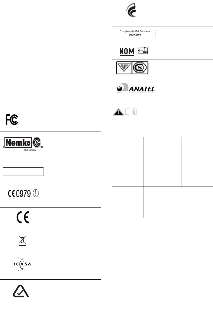 UL 60950-1, 2nd ed., CSA 22.2 No. 60950-1-07 and IEC/