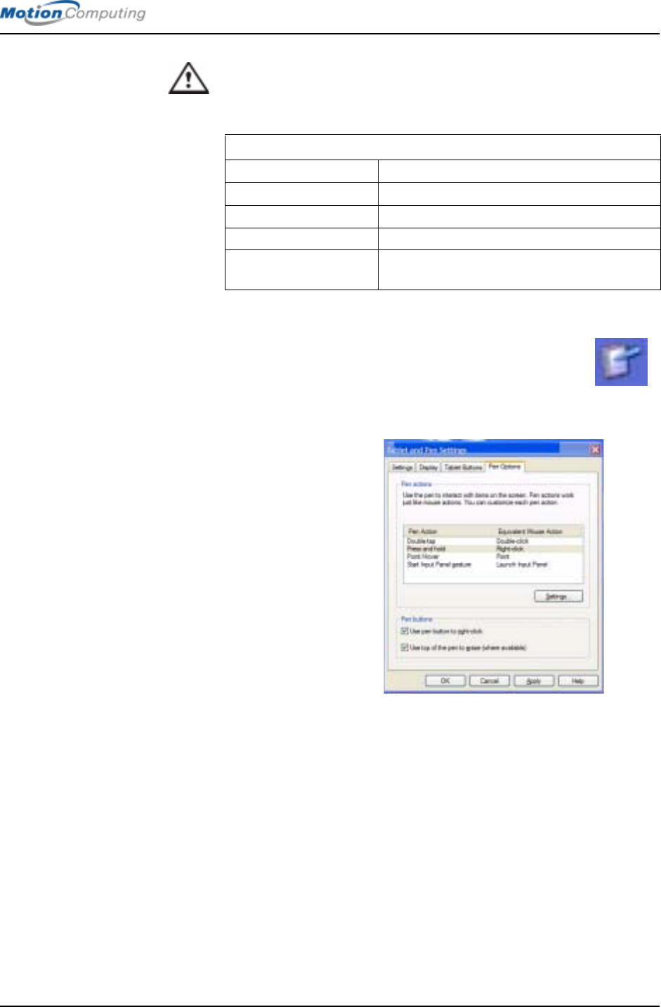 • Tap — Tap the Pen on the Motion M1200 Tablet PC display, without
