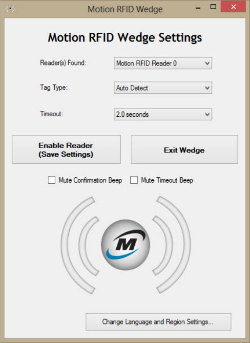 The following configuration options are available in Motion RFID Wedge Settings: