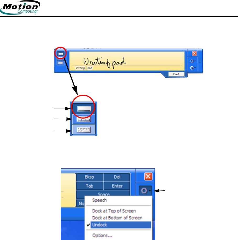 Writing on the Motion Tablet PC digitizer display in this user guide refers to