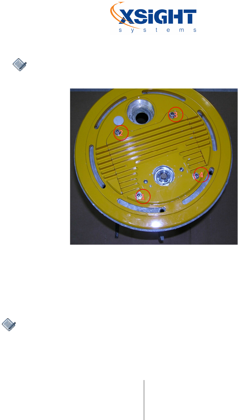 6. Tighten the four (4) screws (P/N XT4050000121) to the lower unit top plate (See figure below).