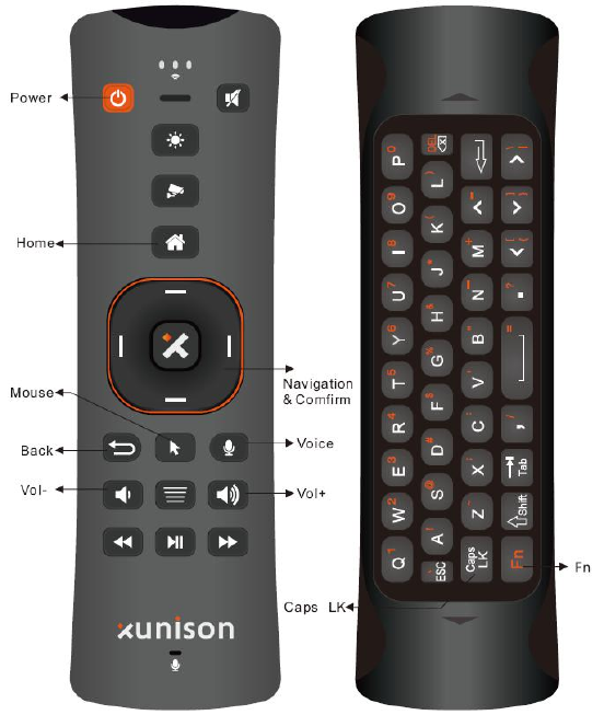 Press air mouse button on A side to turn on/off air mouse function. When air mouse