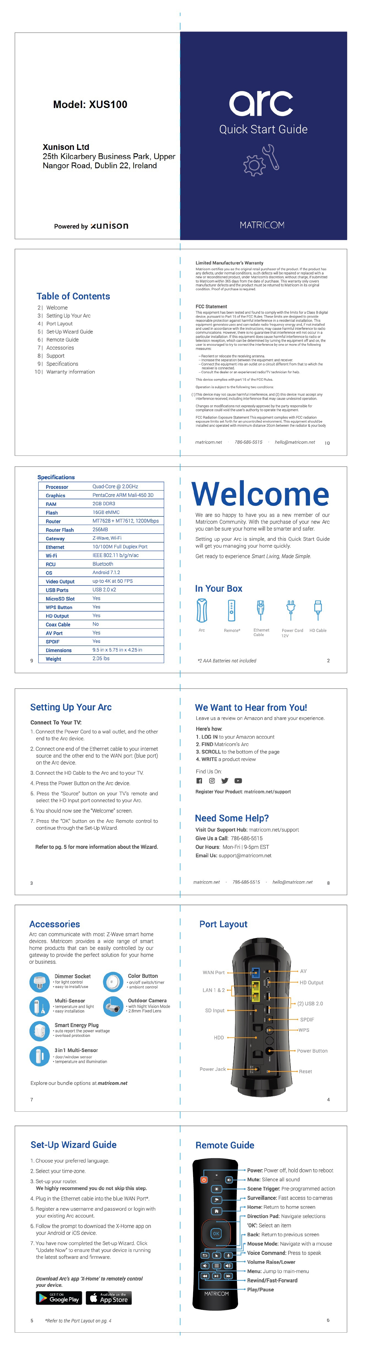 Xunison XUS100 X-brain Smart gateway User Manual Arc quick start guide outlines print 03
