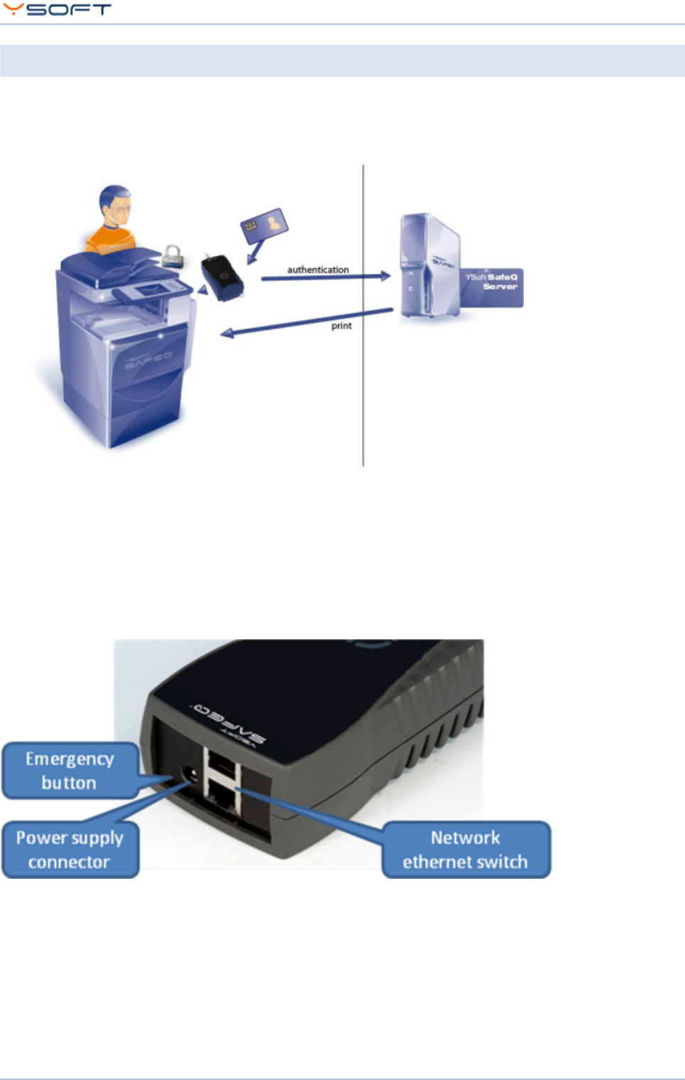 The YSoft SafeQ Ethernet Reader is based on YSoft SafeQ® Terminal UltraLight. YSoft SafeQ® Ethernet®