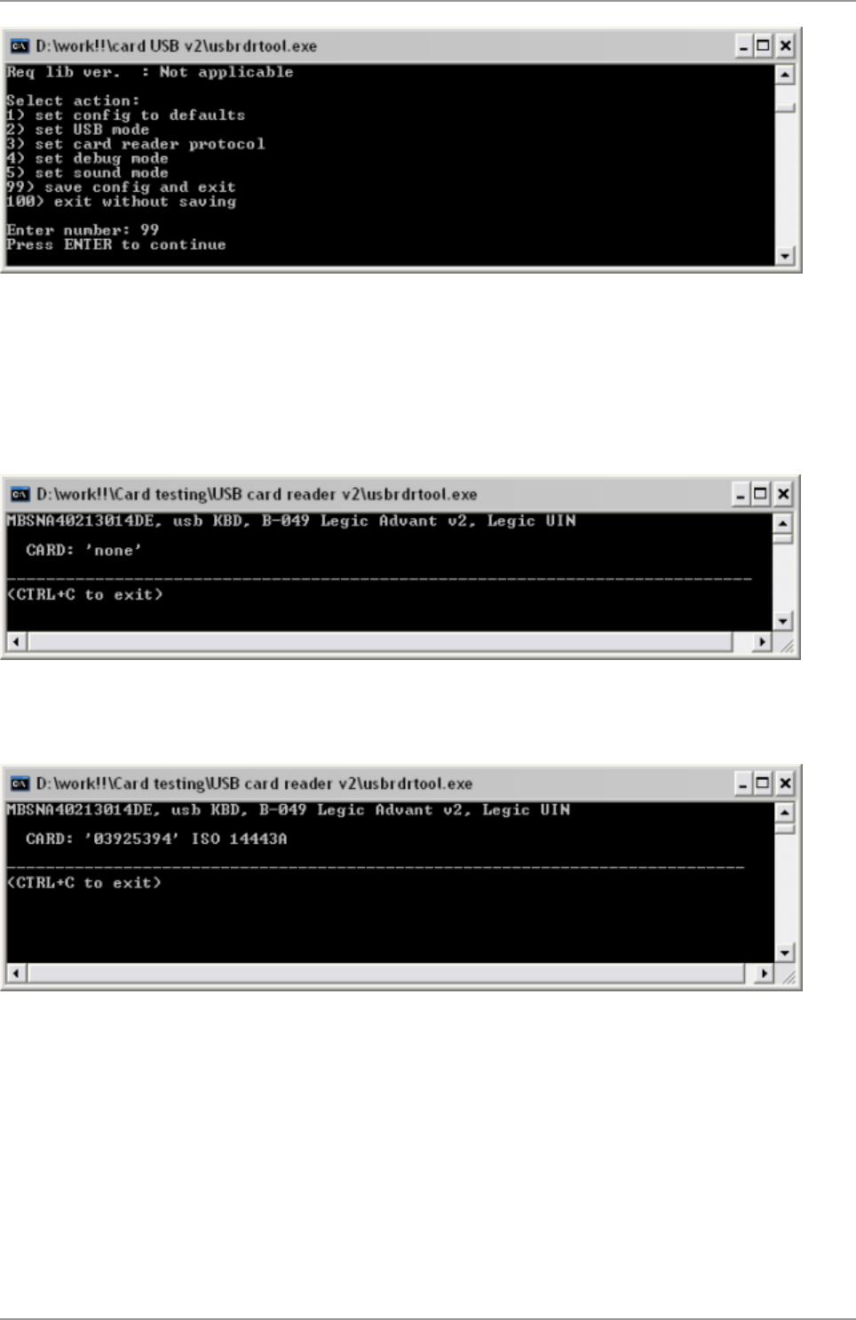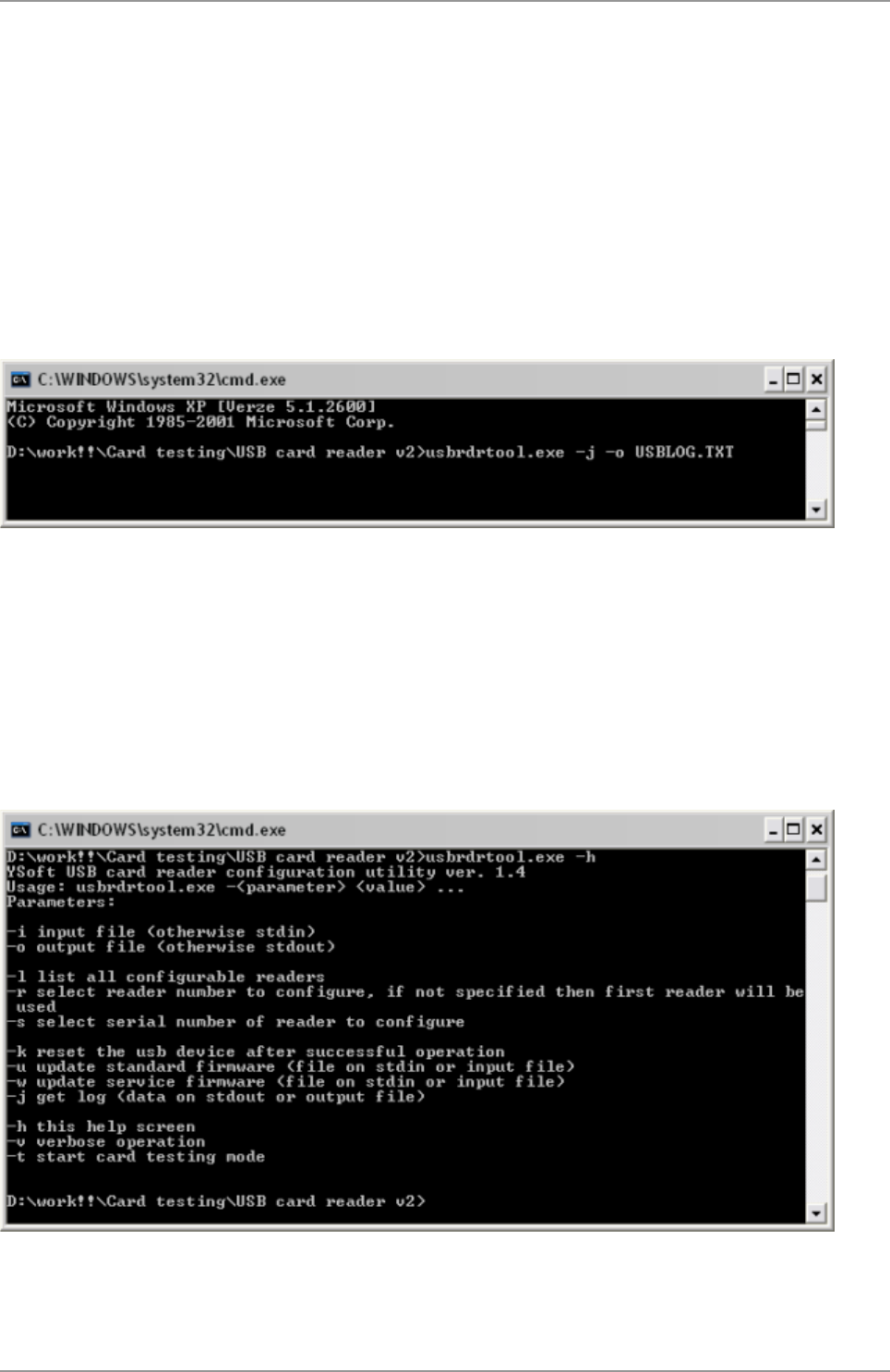 Note: This command can be run form CMD windows or Linux, this is not a command inside the usbrdrtool.