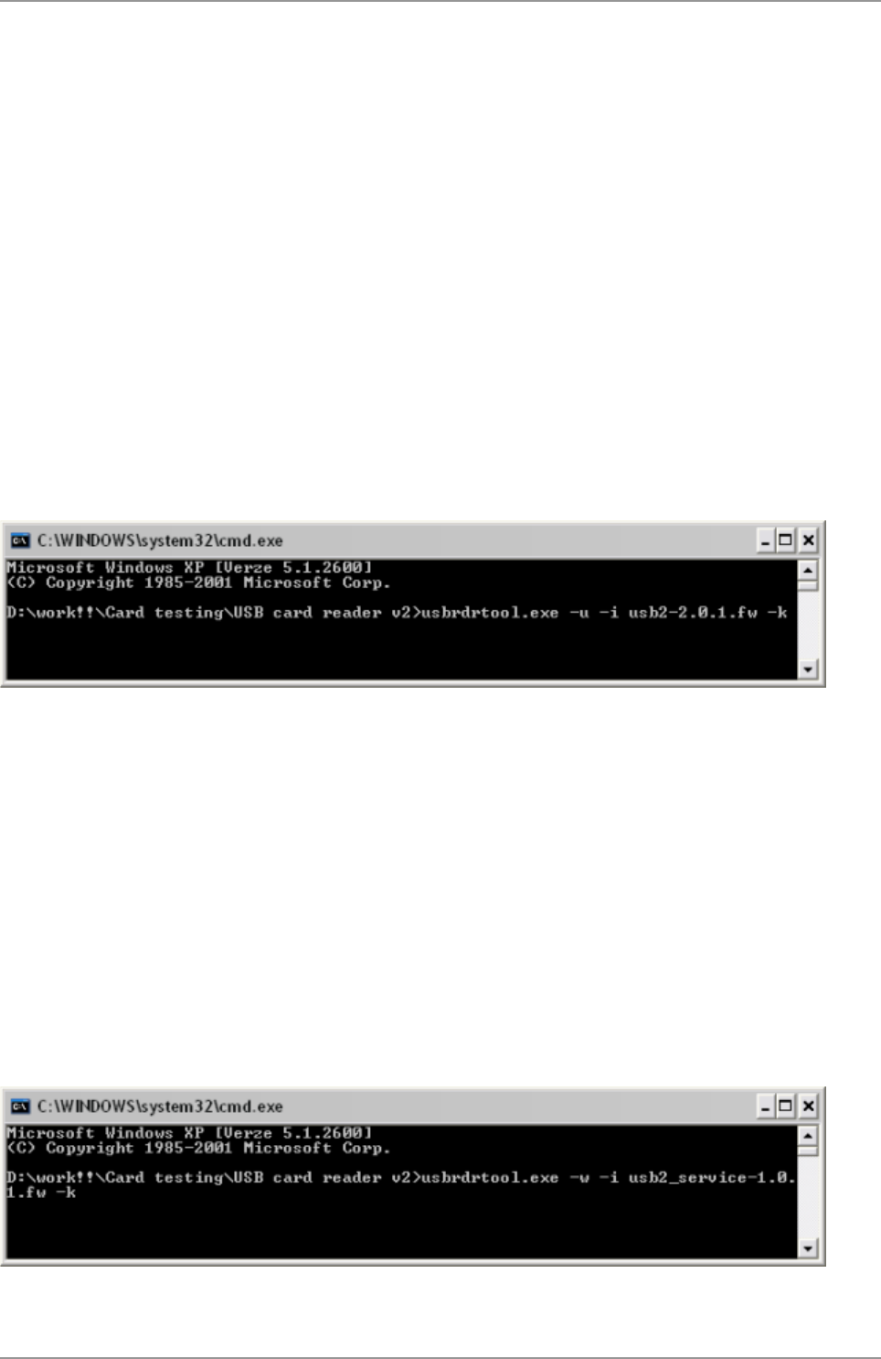 Update of firmware for USB card reader can be done by issuing the following command in the Windows