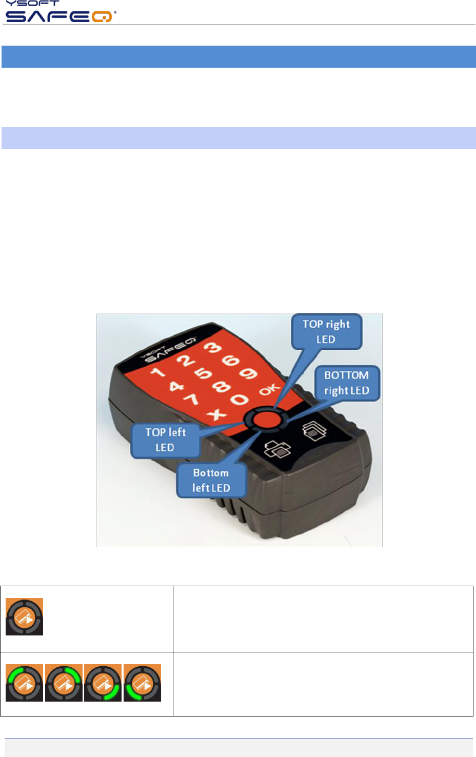 external hardware device. YSoft SafeQ® Terminal UltraLight has no display available; therefore user interaction