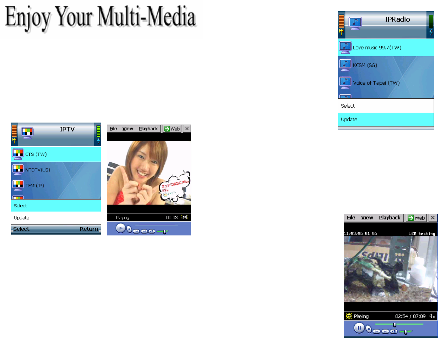 ★ Multiple Media Supported -- ․IP TV ․IP Radio ․IP Camera – Web Cam Streaming