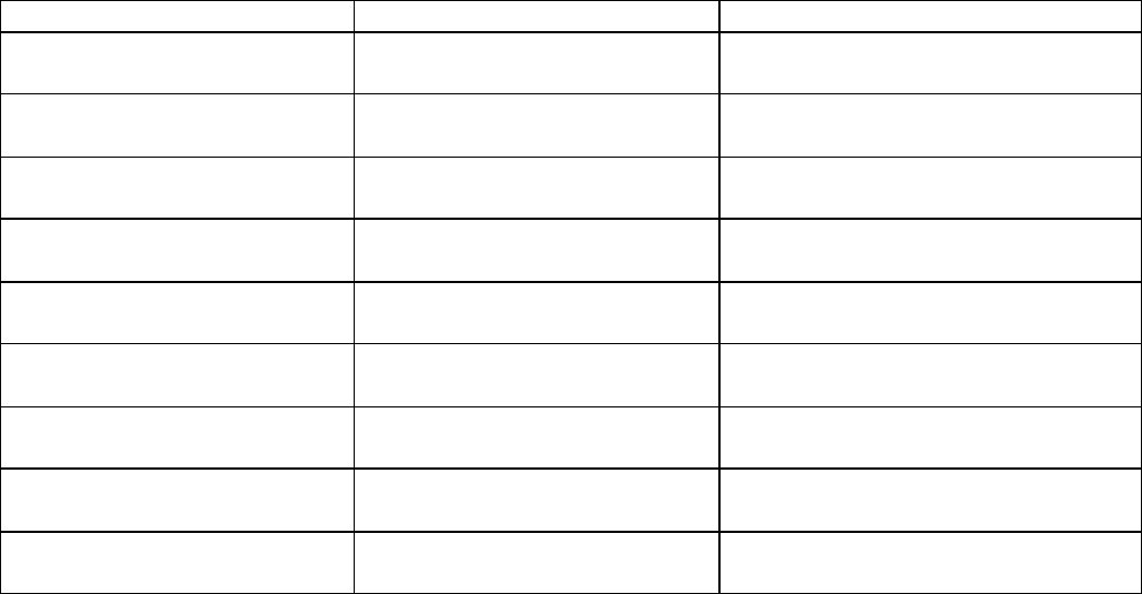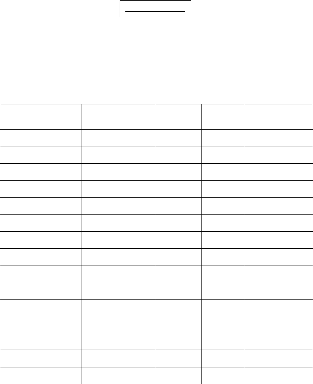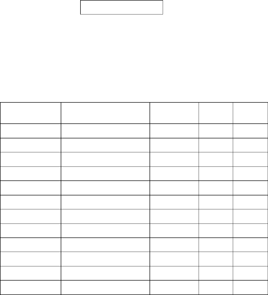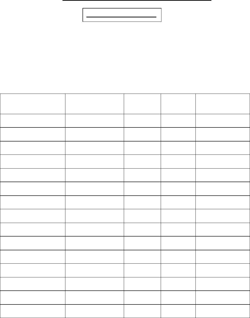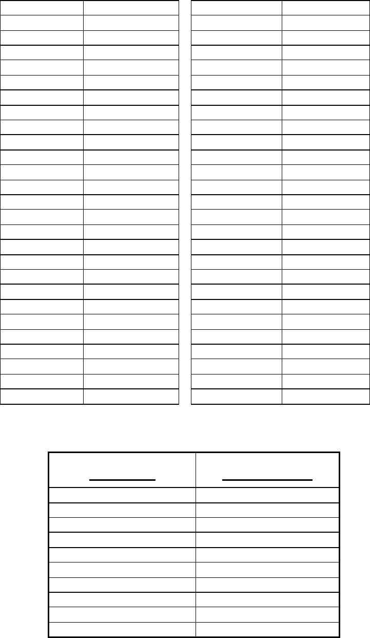 NOTE: This table is for reference only. In order to comply with FCC Part 15 Certification, the