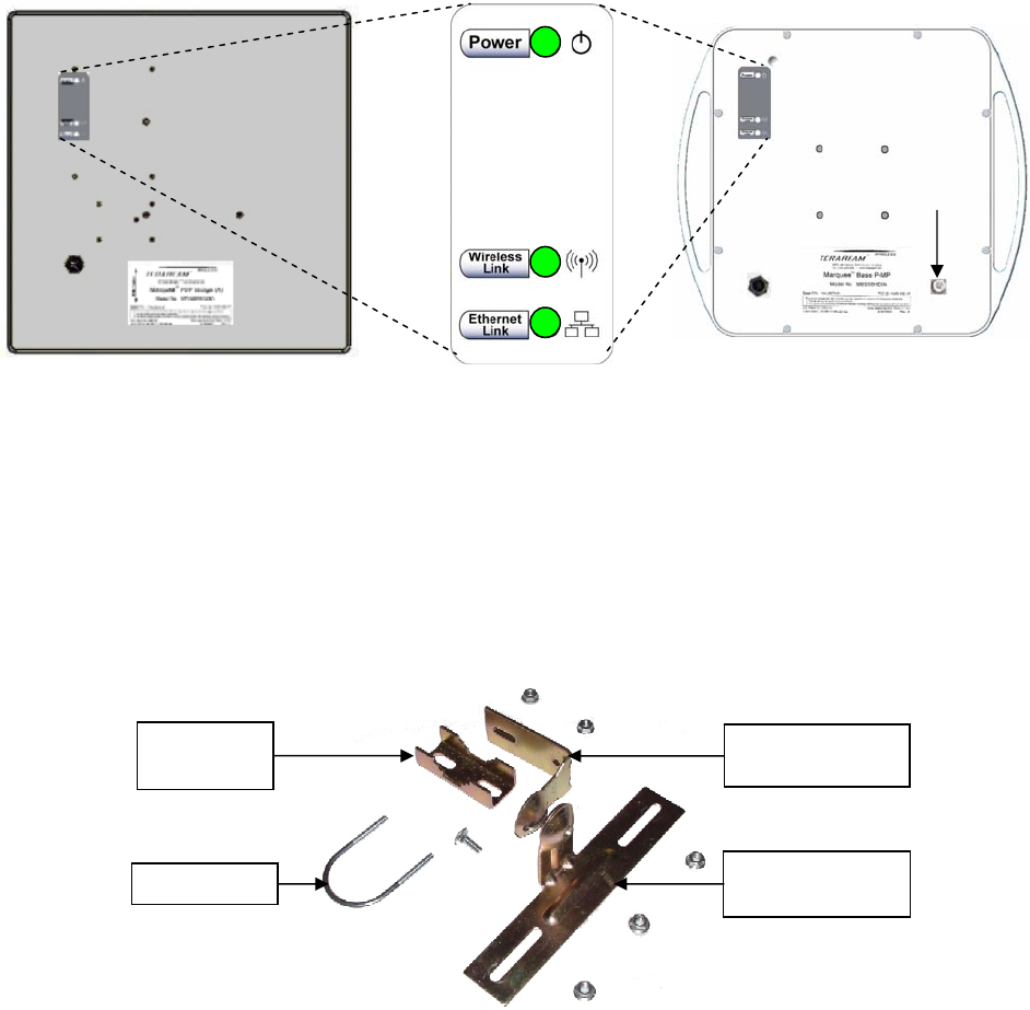 LED status indicators Power, Wireless Link, and Ethernet Link