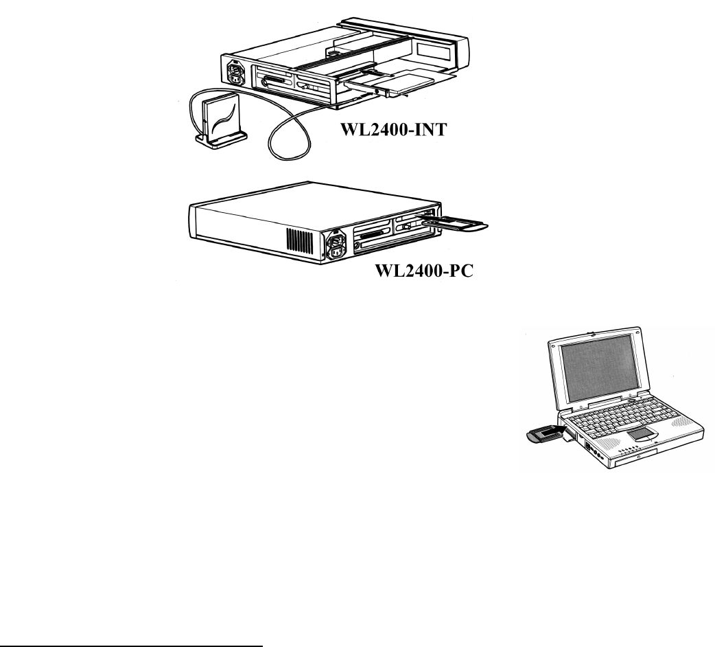 The Wireless LAN models WL2400-ISA and WL2400-PCM are wireless LAN adapter cards