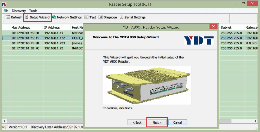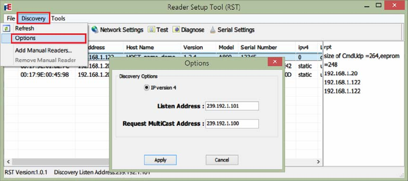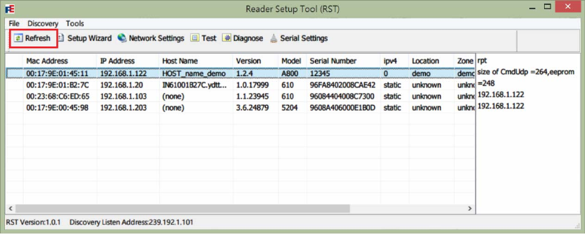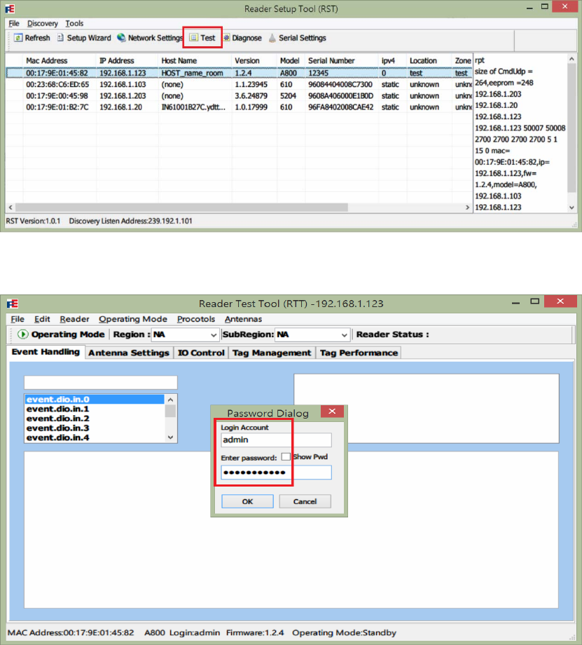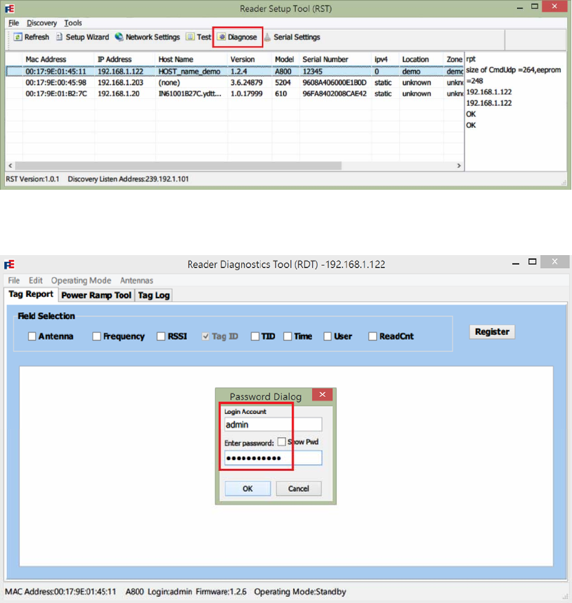 Open and login into the Reader Diagnostics Tool (RST):