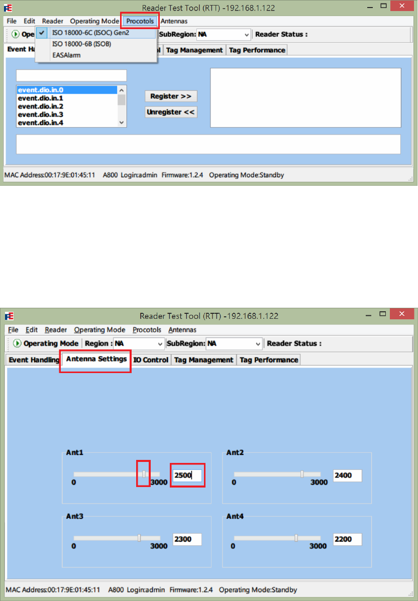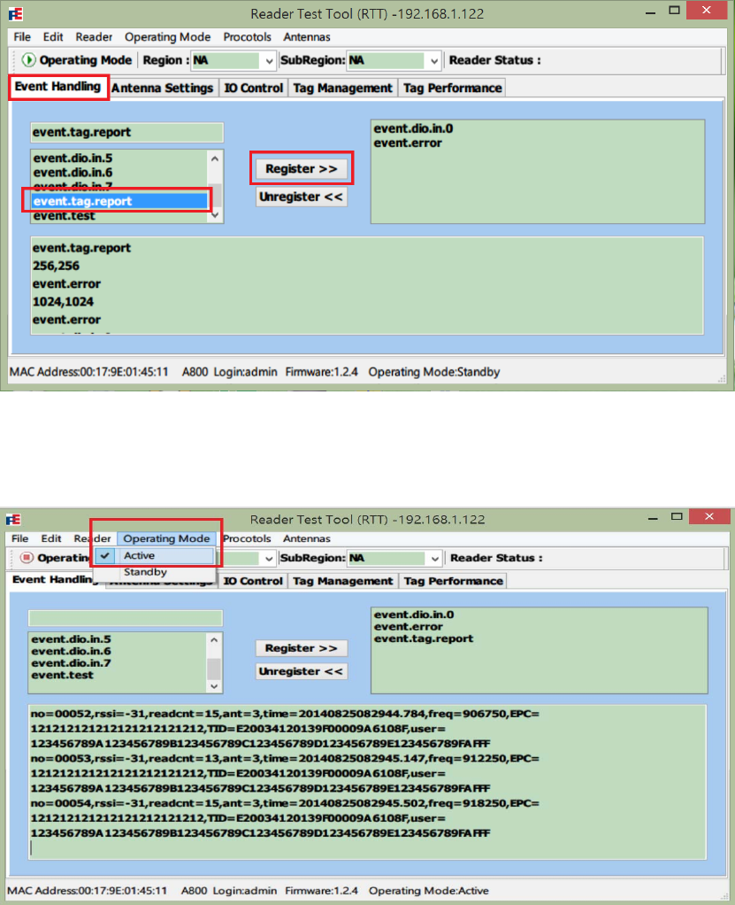 1. Select Event Handling tab after logged in Reader Test Tool (RTT).