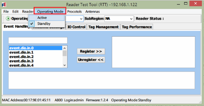 3. Select Operating Mode menu, and set operating mode to Active.